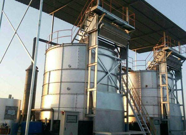 ?、诜椒ǎ喊l(fā)酵塔堆肥有從頂部進料、底部出料的筒倉,通風(fēng)系統(tǒng)使空氣從筒倉的底部通過堆料,在筒倉的上部收集和處理廢氣。新鮮的畜禽糞便和各種輔料,攪拌均勻后經(jīng)皮帶或料斗設(shè)備提升到塔式反應(yīng)器的發(fā)酵筒倉內(nèi),物料被連續(xù)或間歇地加入塔式反應(yīng)器,通常允許物料從反應(yīng)器的頂部向底部周期性地移行下落,同時在塔內(nèi)通過翻版的翻動或風(fēng)管進行通風(fēng)、干燥。